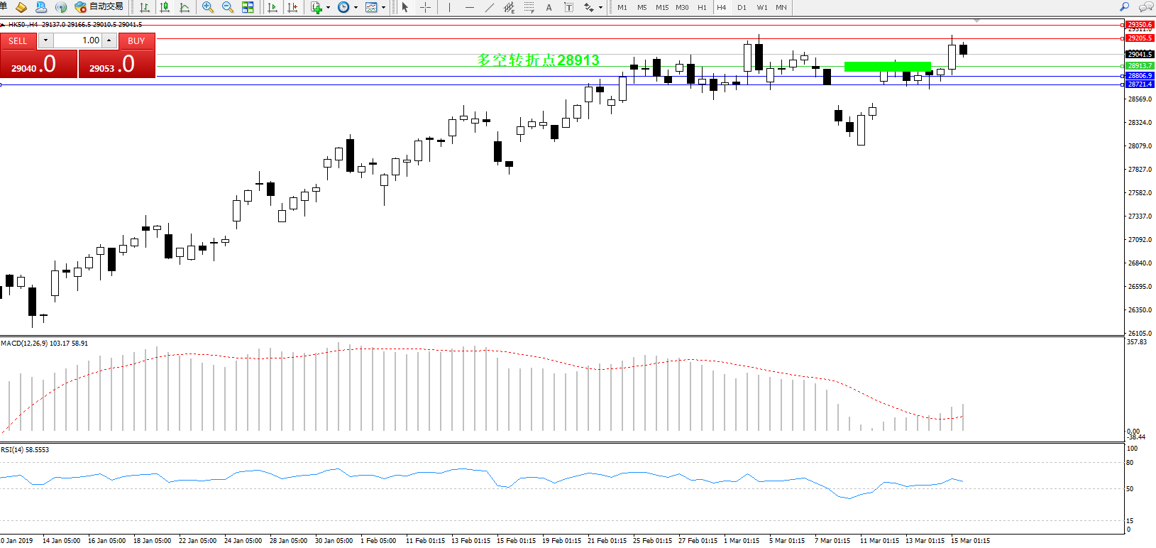 香港恒生指数收盘升0.6%至29012.26点。再度破29000;港股短期料再升,上半年有望收复三万点。市场看好A股、港股上半年的表现,且预计近期国企公布业绩后可带动恒指在短期内再向上突破。另一方面,A股今年获MSCI增加权重至两成,资金量不缺,短期仍有上升空间,间接提振港股表现。港股上周二(12日)再形成一个上升裂口,反映市场下调压力不大,相信恒指在27800点有支持,上半年更可收复30000点关口。