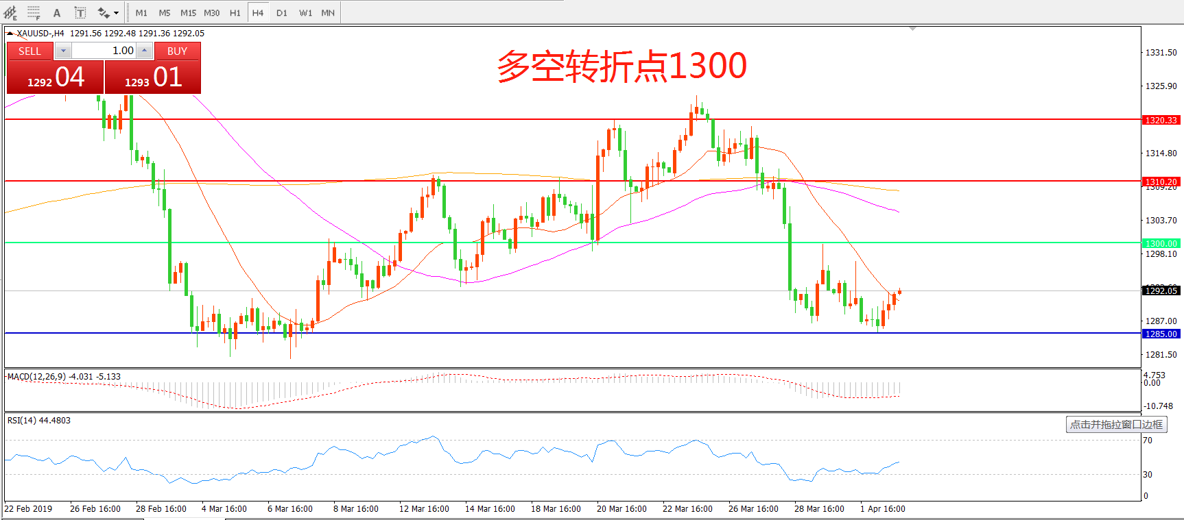 多空转折点:1300.00