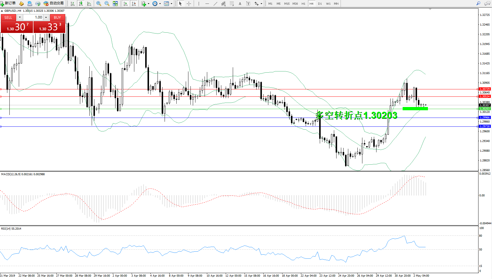 交易策略:1.30203上方看涨,目标1.305341.30729