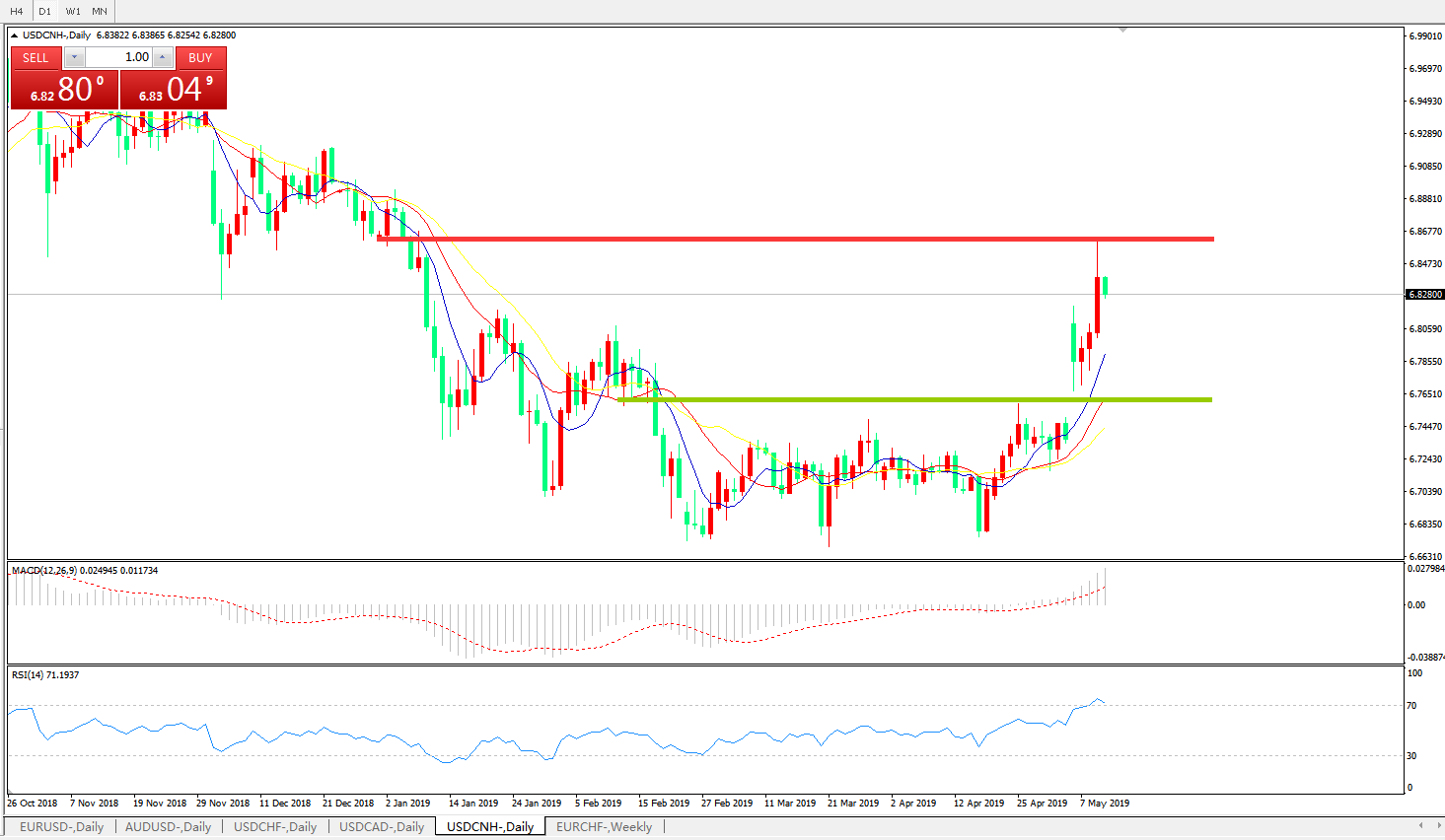 技术面简析:日线均线呈有序多头排列看多,MACD上穿0轴且动能柱0轴上方快速放量RSI急速走升,汇价企稳多空转折区域快速上攻,预计短期汇价或存在回落整理可能,中期不排除有进一步上行空间,重点关注中美贸易谈判最新进展及特朗普推特更新情况