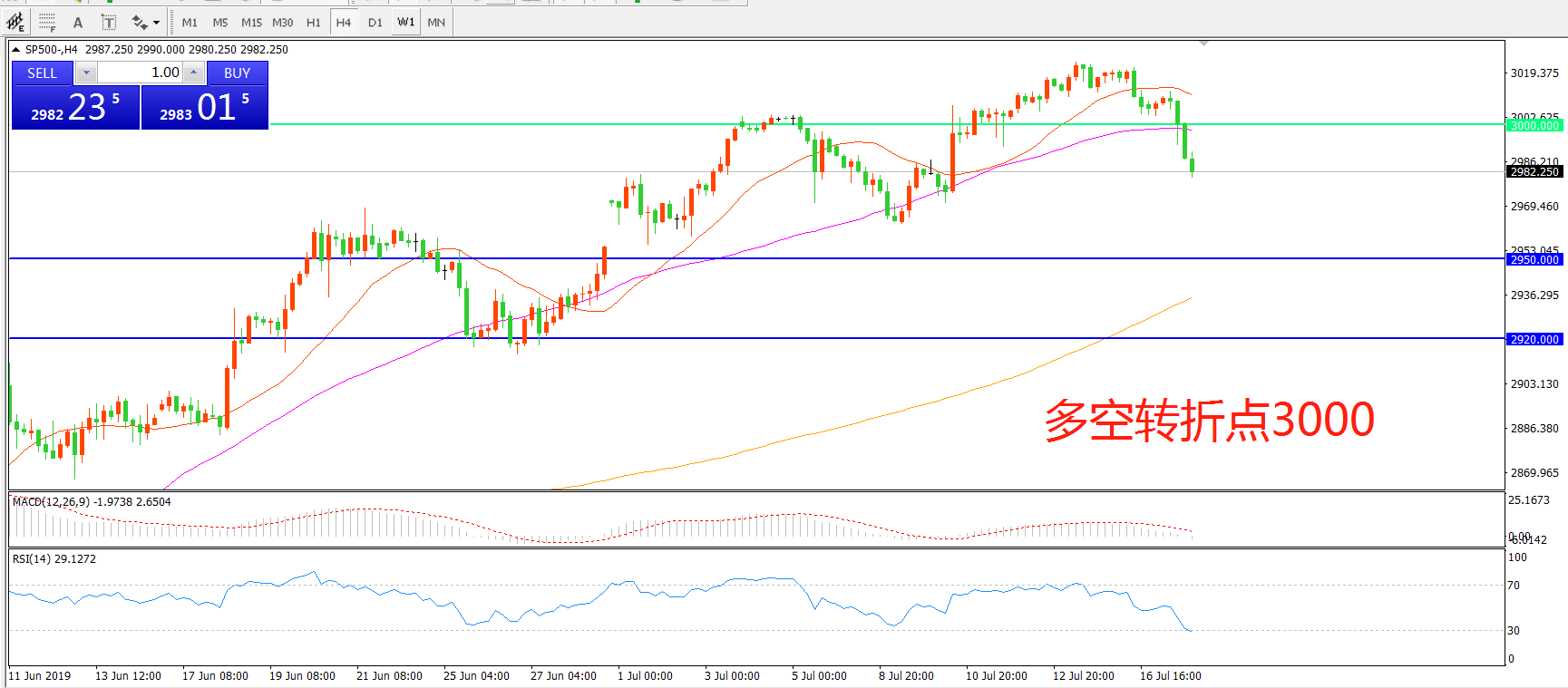 交易策略:在3000.00之下看跌,目标2950.00     2920.00