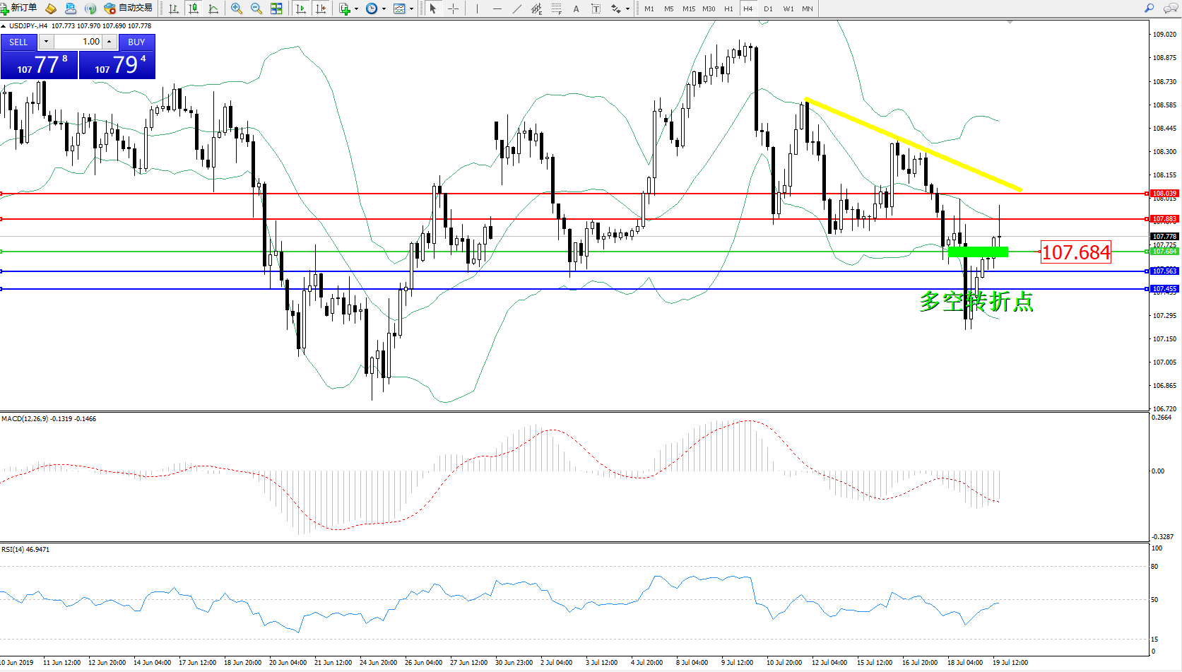 备选策略:107.684下方看跌,目标 107.563、107.455