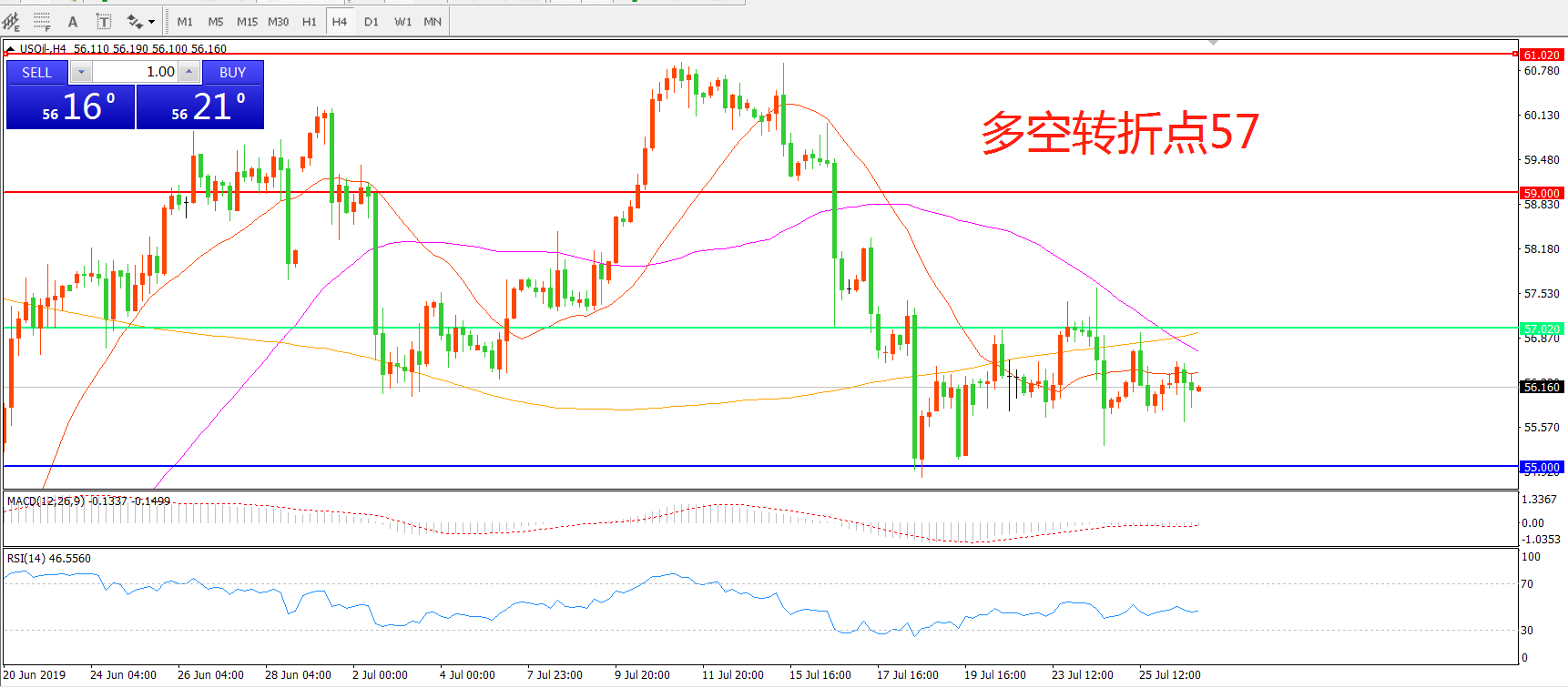 交易策略:在57.00之下看跌,目标55.00     51.50
