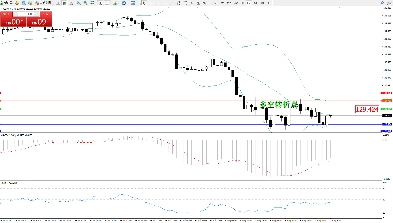 交易策略:129.424下方看跌,目标128.434127.991