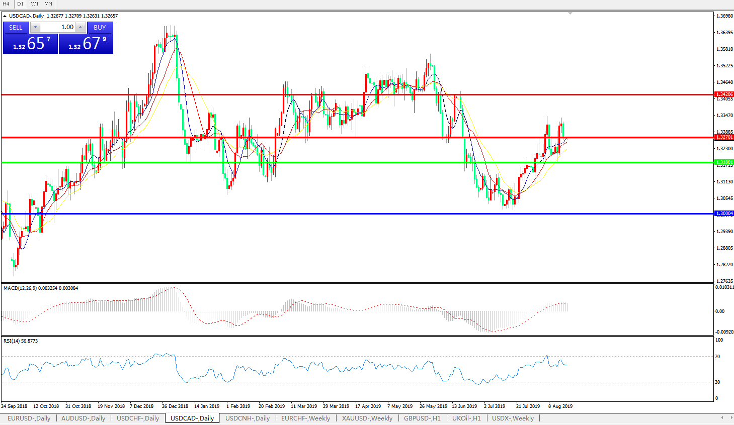 美元兑加元USDCAD    日线图: