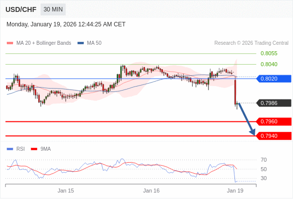 在 0.8020 之下,看跌,目标价位为 0.7960 ,然后为 0.7940 。