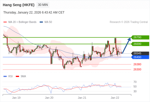 在 26490 之上,看涨,目标价位为 26690 ,然后为 26790 。