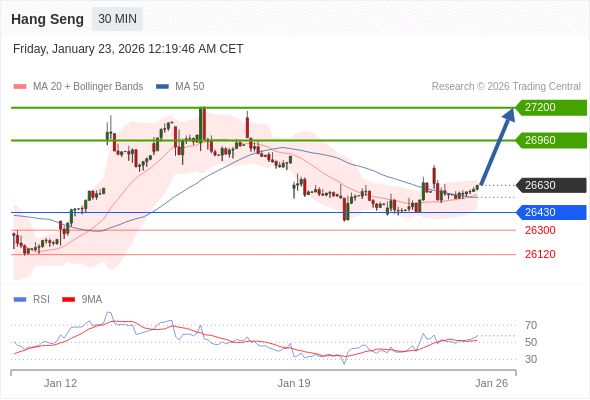 恒生指数 当日内: 目标为27200。