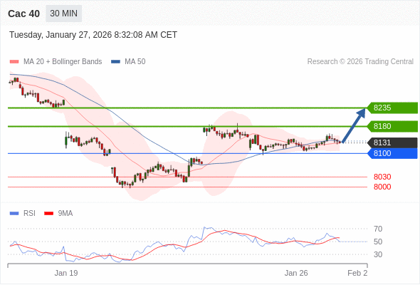 在 8100 之上,看涨,目标价位为 8180 ,然后为 8235 。