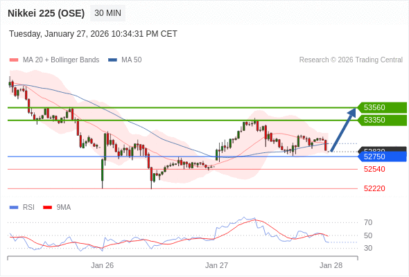在 52750 之上,看涨,目标价位为 53350 ,然后为 53560 。