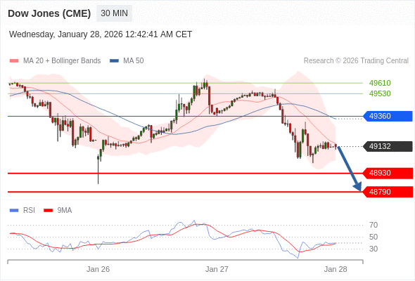在 49360 之下,看跌,目标价位为 48930 ,然后为 48790 。