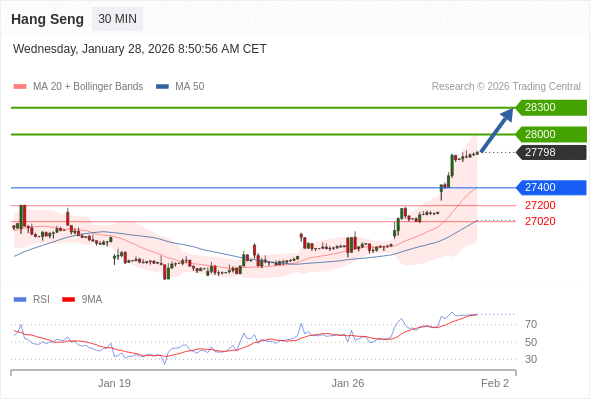 恒生指数 当日内: 目标位为28300。