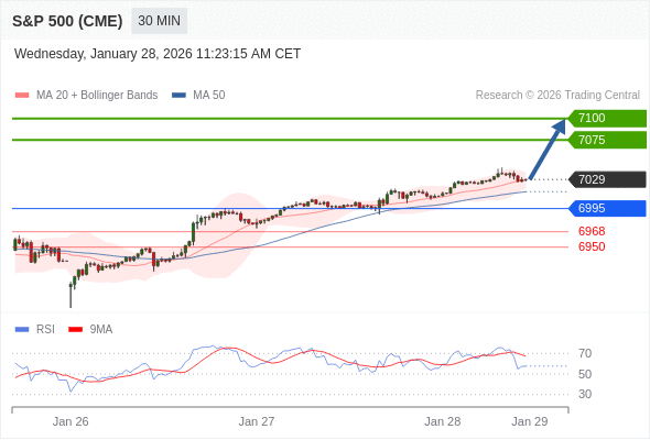 在 6995 之上,看涨,目标价位为 7075 ,然后为 7100 。