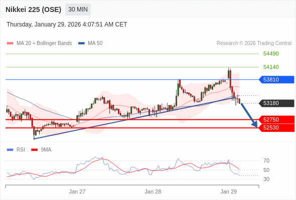 在 53810 之下,看跌,目标价位为 52750 ,然后为 52530 。