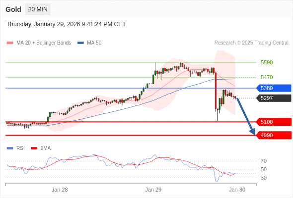 在 5380 之下,看跌,目标价位为 5100 ,然后为 4990 。