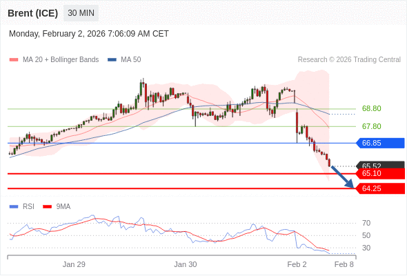 在 66.85 之下,看跌,目标价位为 65.10 ,然后为 64.25 。
