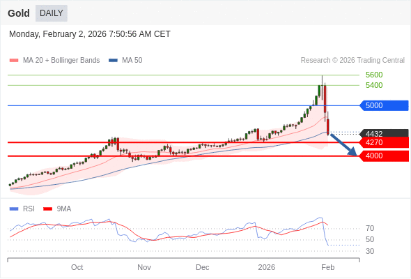 交易策略: 在 5000 之下,看跌,目标价位为 4270 ,然后为 4000 。
