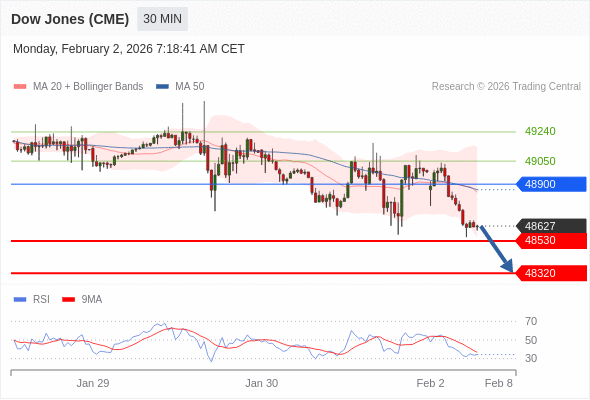 在 48900 之下,看跌,目标价位为 48530 ,然后为 48320 。