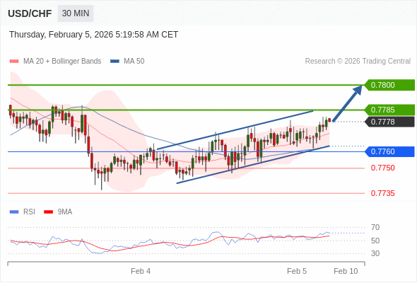 在 0.7760 之上,看涨,目标价位为 0.7785 ,然后为 0.7800 。