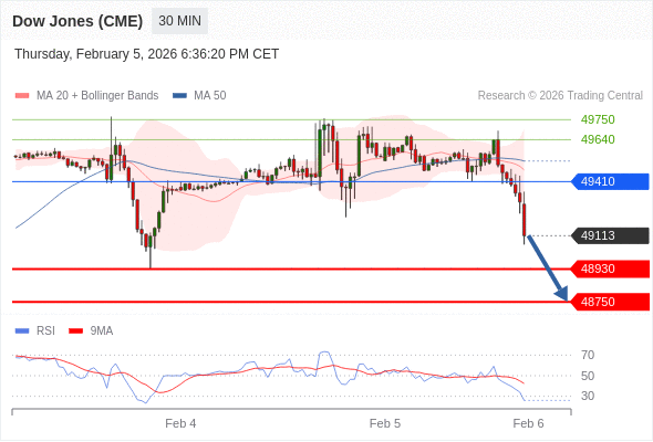 在 49410 之下,看跌,目标价位为 48930 ,然后为 48750 。