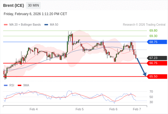 交易策略: 在 68.75 之下,看跌,目标价位为 66.75 ,然后为 65.50 。