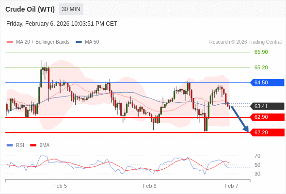 交易策略: 在 64.50 之下,看跌,目标价位为 62.90 ,然后为 62.20 。