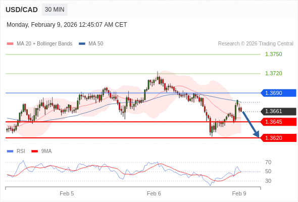 在 1.3690 之下,看跌,目标价位为 1.3645 ,然后为 1.3620 。