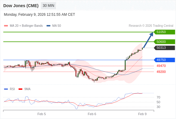 在 49750 之上,看涨,目标价位为 50600 ,然后为 51050 。