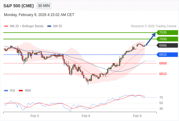 交易策略: 在 6915 之上,看涨,目标价位为 7000 ,然后为 7035 。