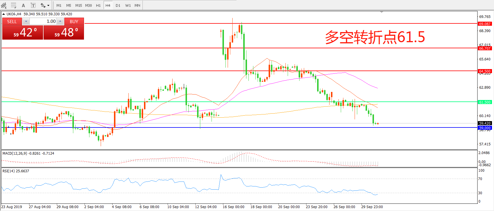 交易策略:在61.50之下看跌,目标59.00    57.00