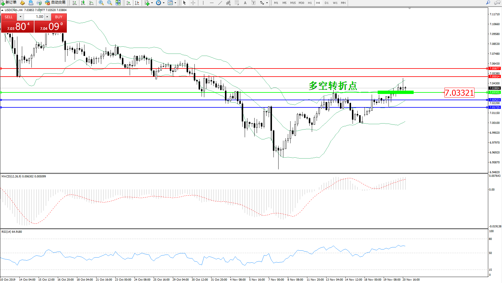 交易策略:7.03321上方看涨,目标7.050147.05877