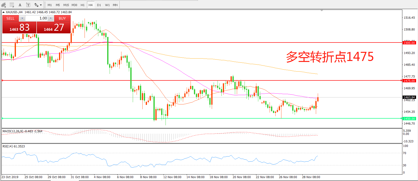 多空转折点:1450.00