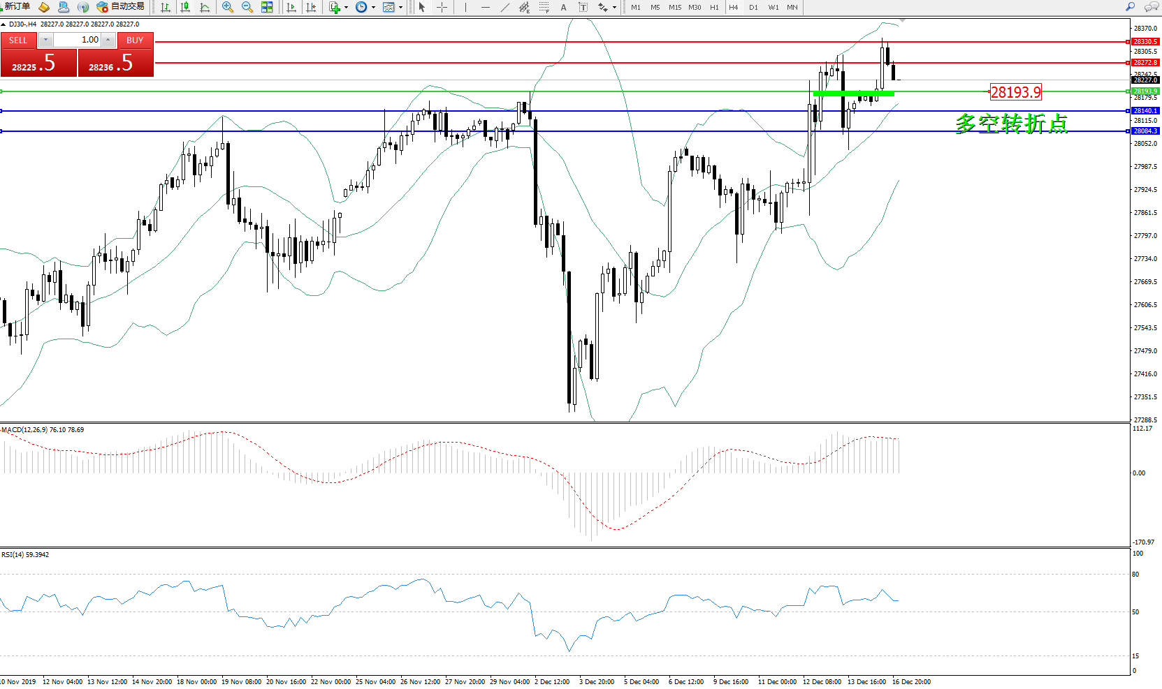 道琼斯指数DJ30—— 4小时K线图显示: