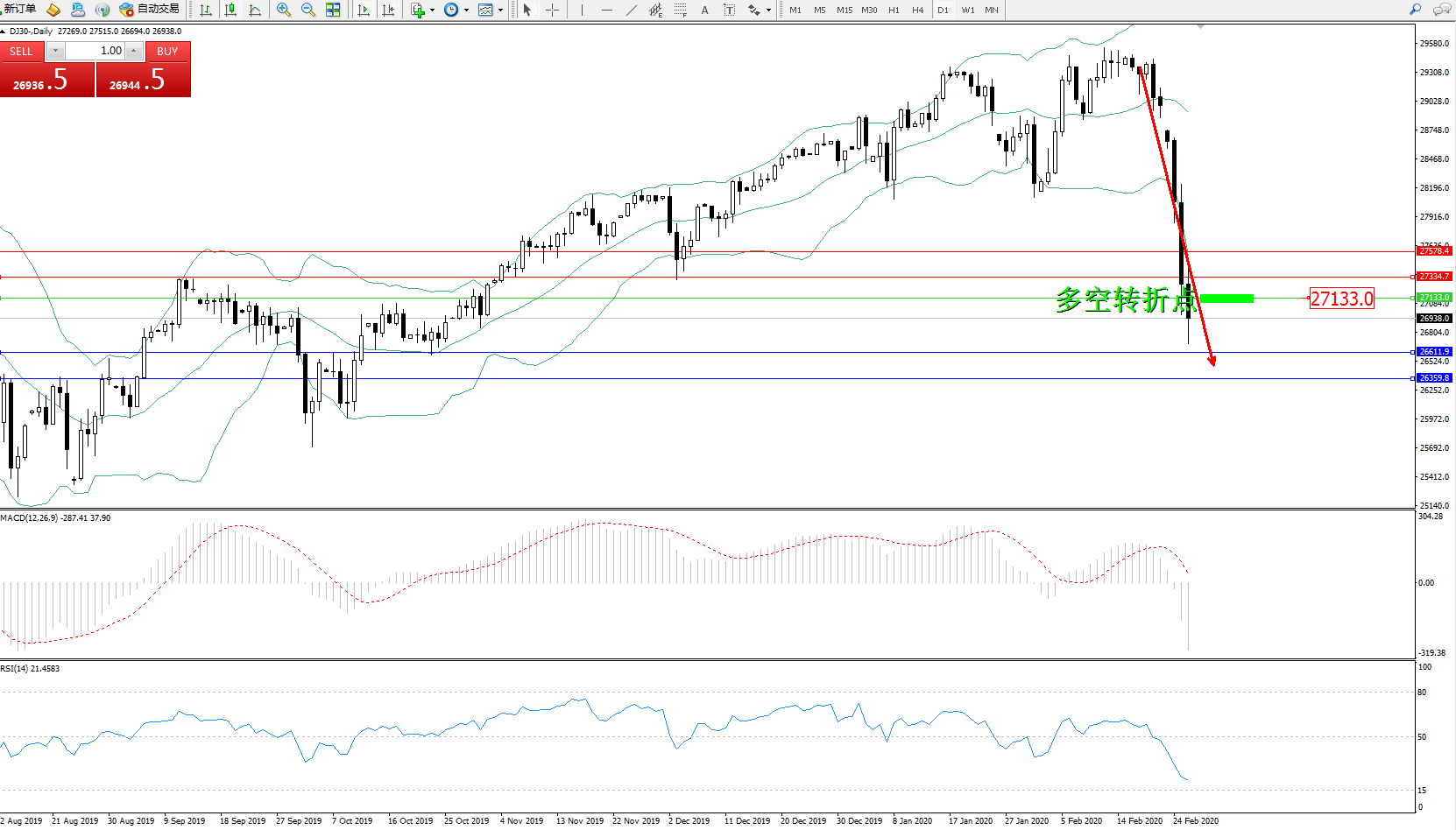 道琼斯指数2月26日(周三)收盘下跌123.50点,跌幅0.46%,报26957.86点。美股连续数日大跌,累计跌幅创历史纪录,防疫专家称全球性的公共卫生危机或在所难免,全球市场因此人心惶惶,美债收益率还有很大的下跌空间,可能还要低得多,这取决于公共卫生安全问题对经济打击的严重程度;美国国债收益率会下跌多少取决于公共卫生安全问题的蔓延程度,会有一个底部,但还不清楚在哪里;只要投资者大举买入安全资产以抵消风险较大的投资,收益率就可以继续下滑,未来美债收益率可能会跌破1%。