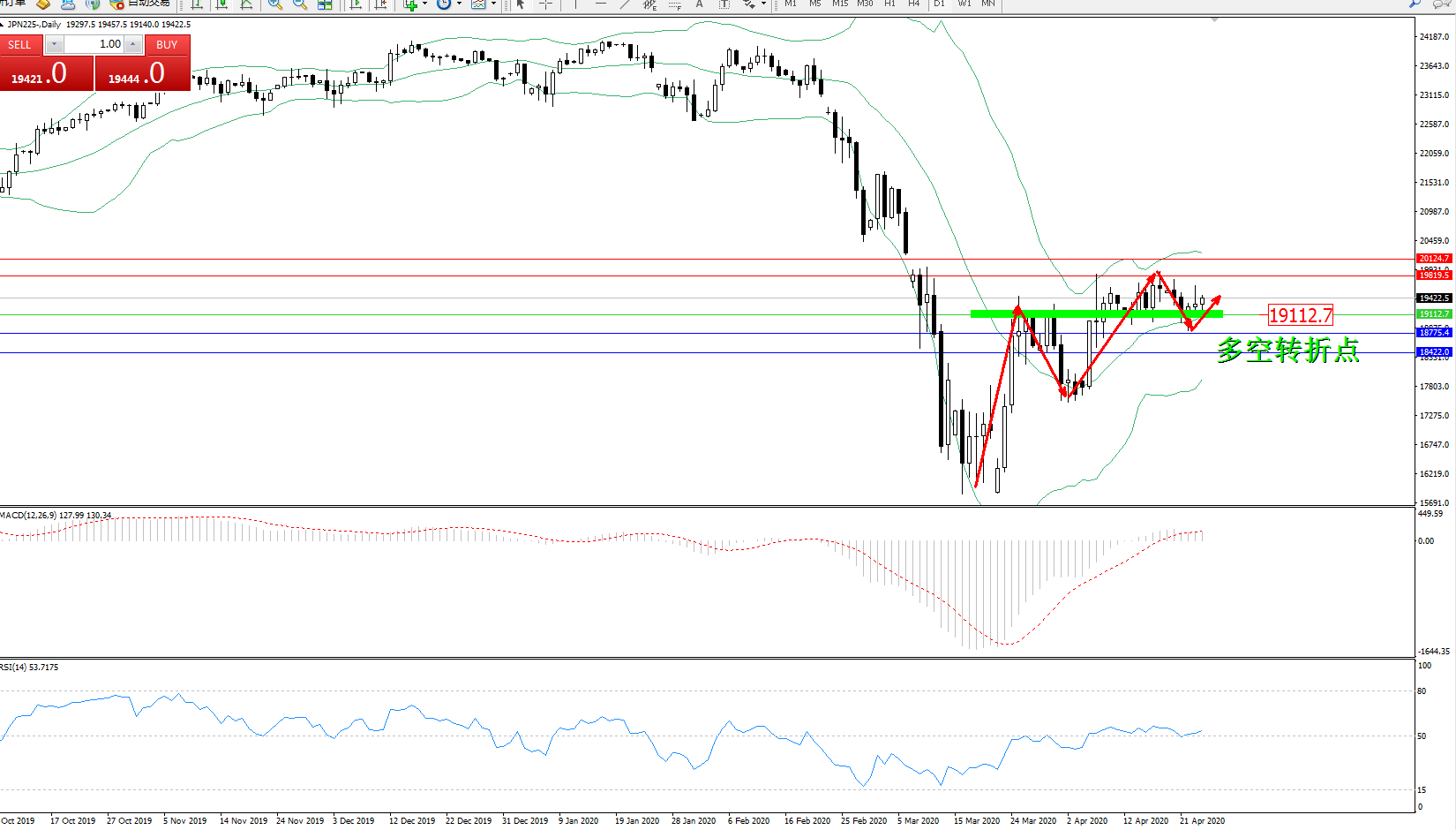 交易策略:19112上方看涨,目标19819、20124