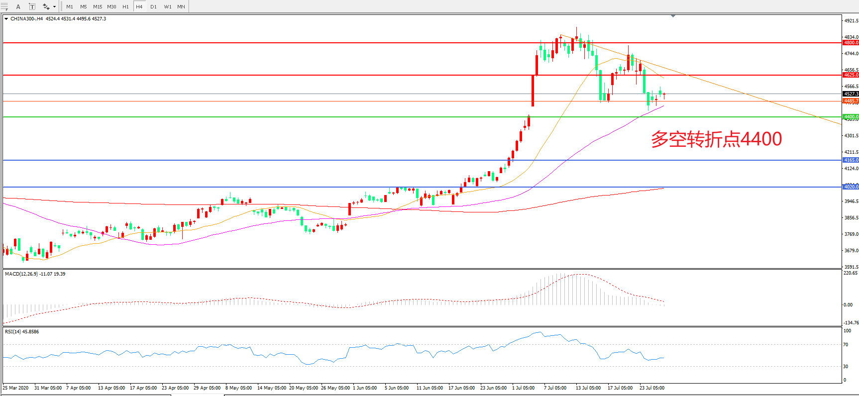 支撑位:4400.00       4165.00