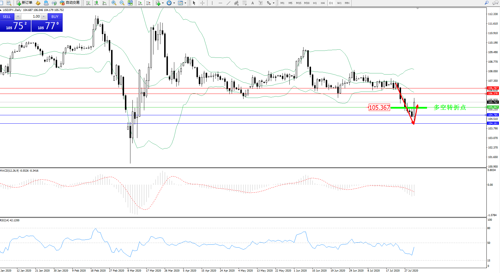 交易策略:105.367上方看涨,目标106.378、106.787