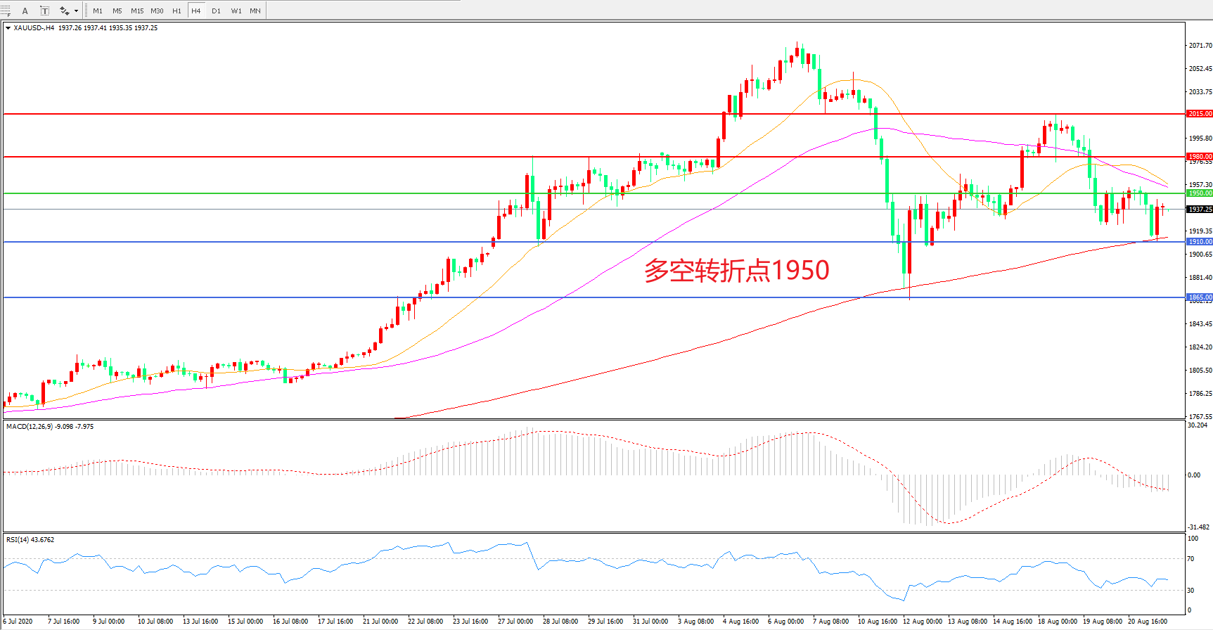 交易策略:在1950.00之下看跌,目标1910.00   1865.00