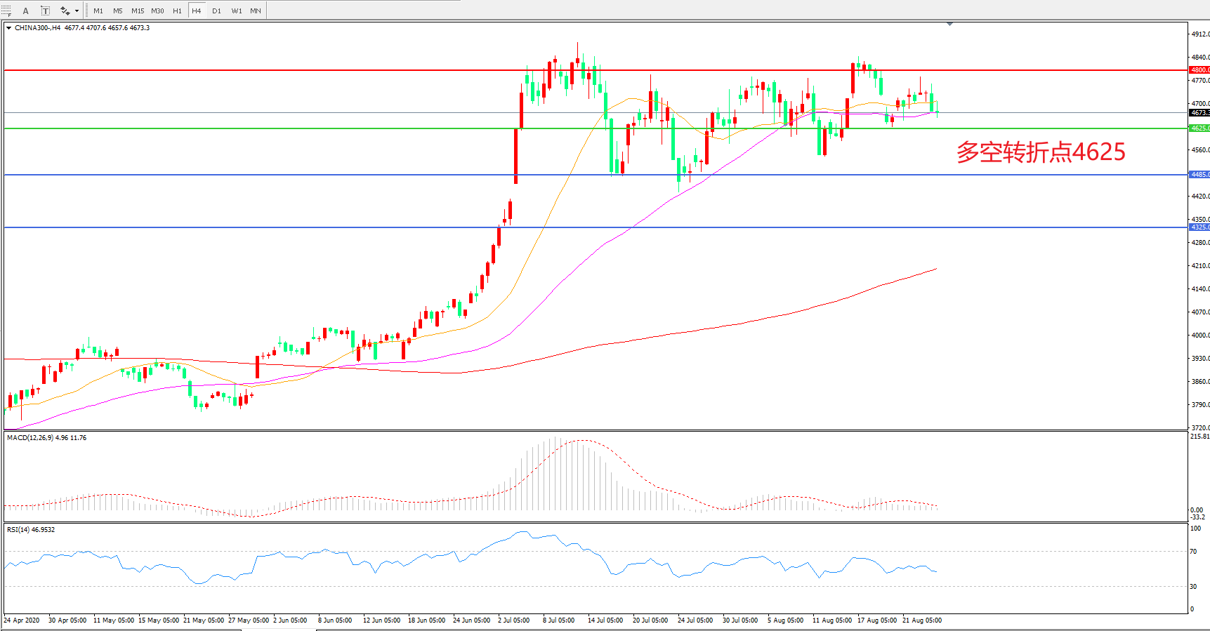 多空转折点:4625.00