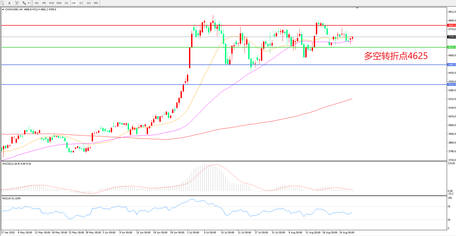 多空转折点:4625.00