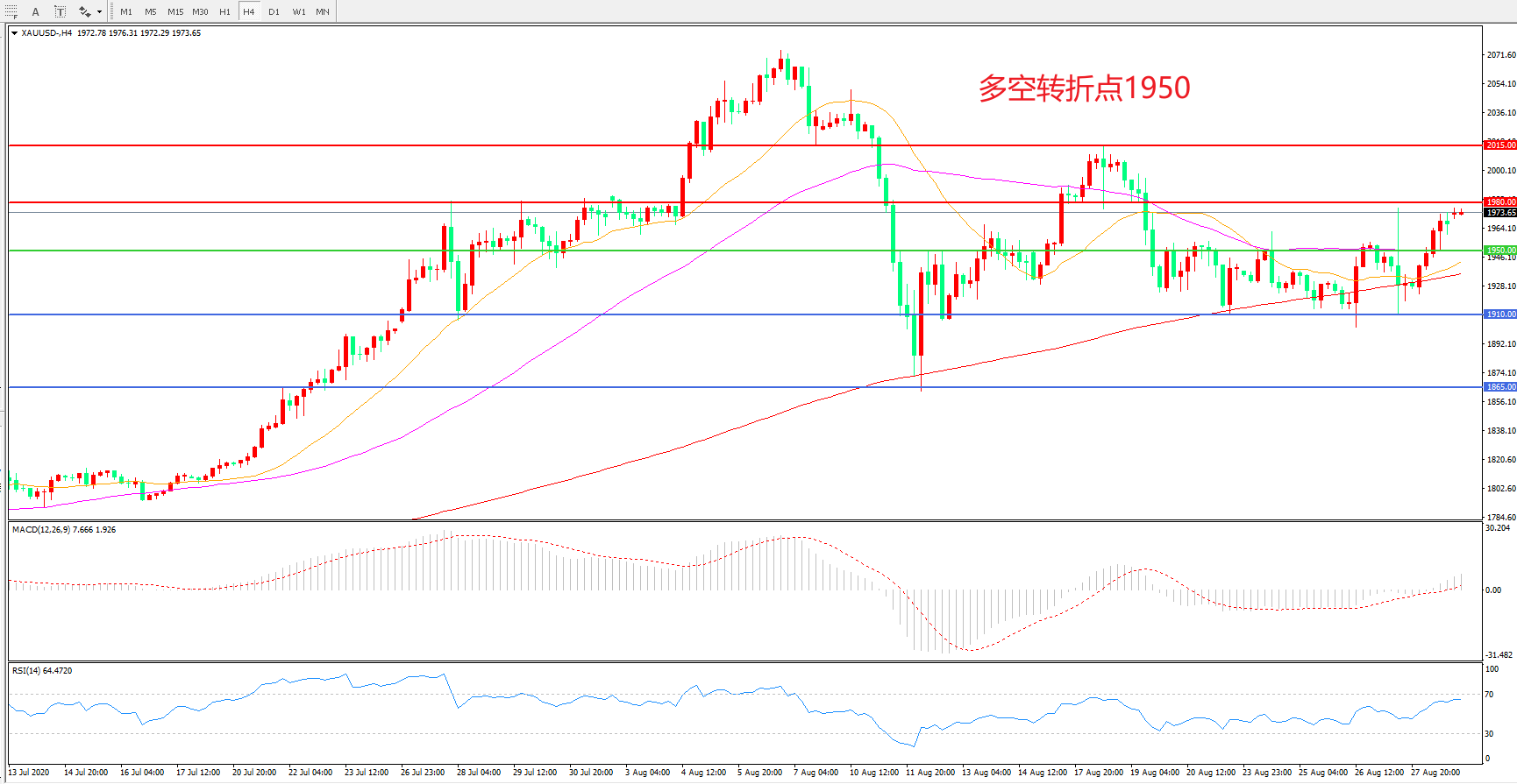 现货黄金XAU/USD    4小时图