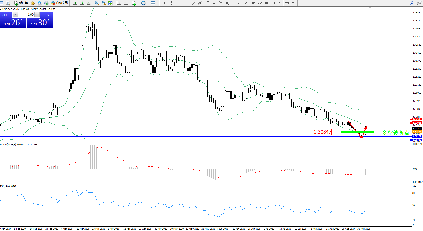 交易策略:1.30847上方看涨,目标1.32021、1.32543