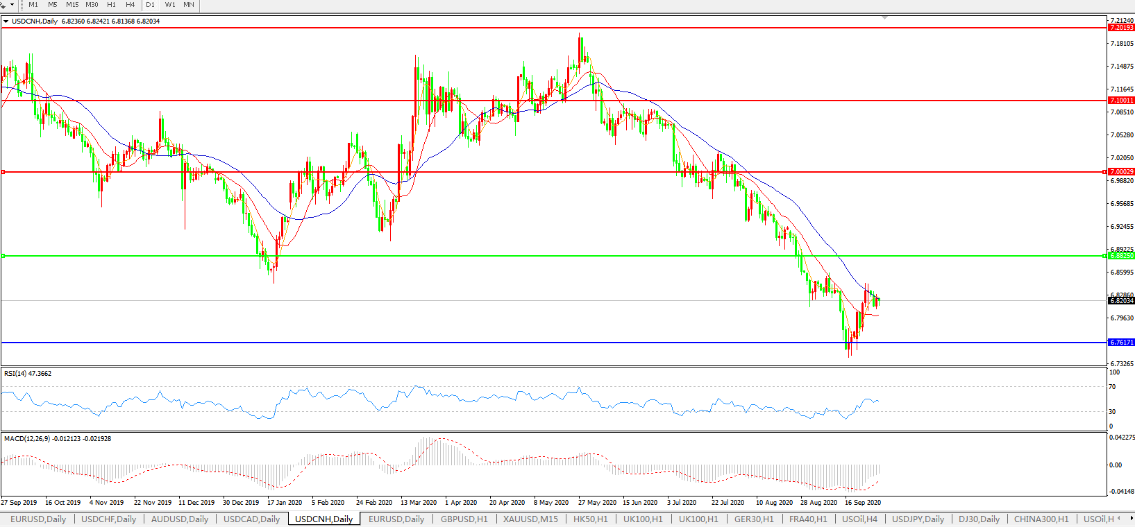 美元兑人民币USDCNH    日线图: