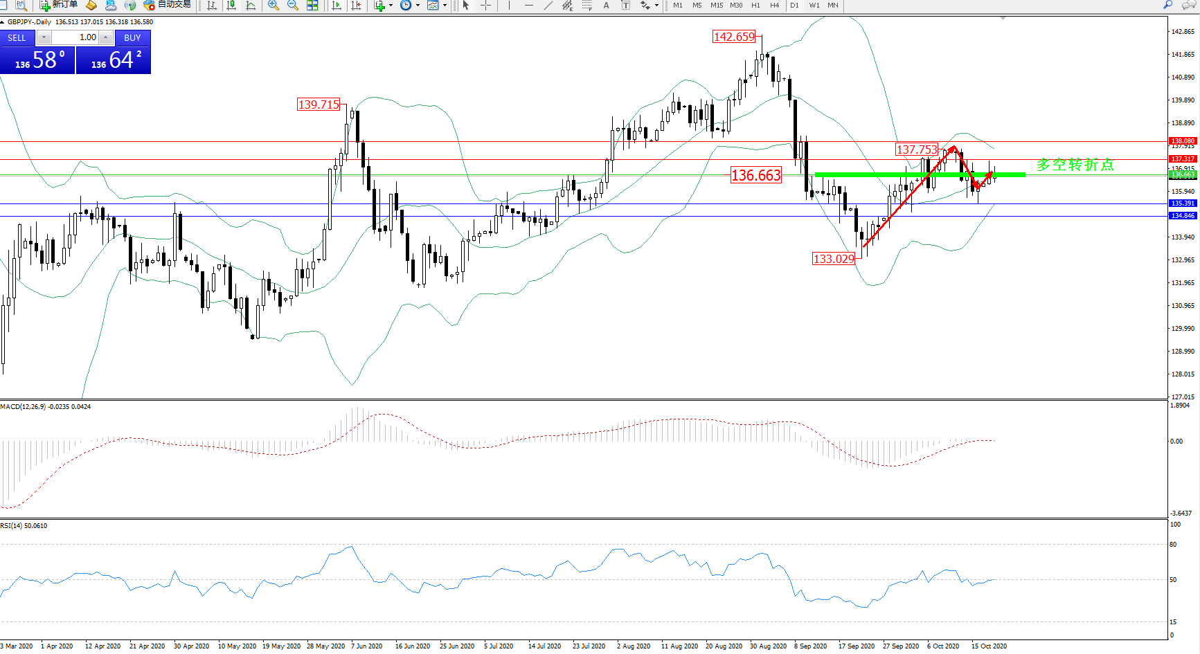 备选策略:136.663上方看涨,目标137.317、138.080