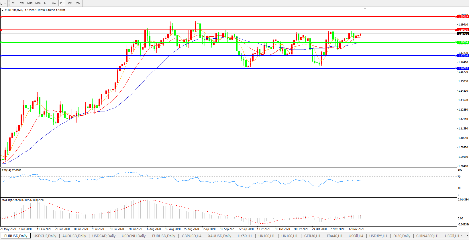 欧元兑美元EURUSD   日线图: