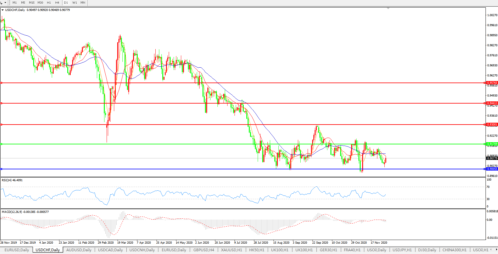 美元兑瑞郎USDCHF    日线图: