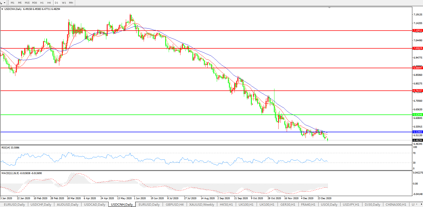 交易策略: 在6.6265之下,看跌,目标价位为6.5286,然后为6.3500。