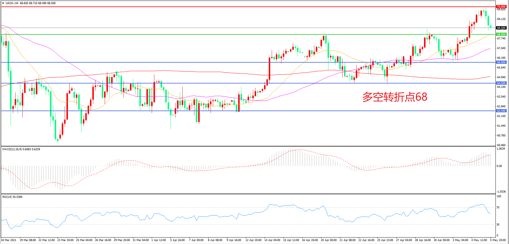 多空转折点:68.00