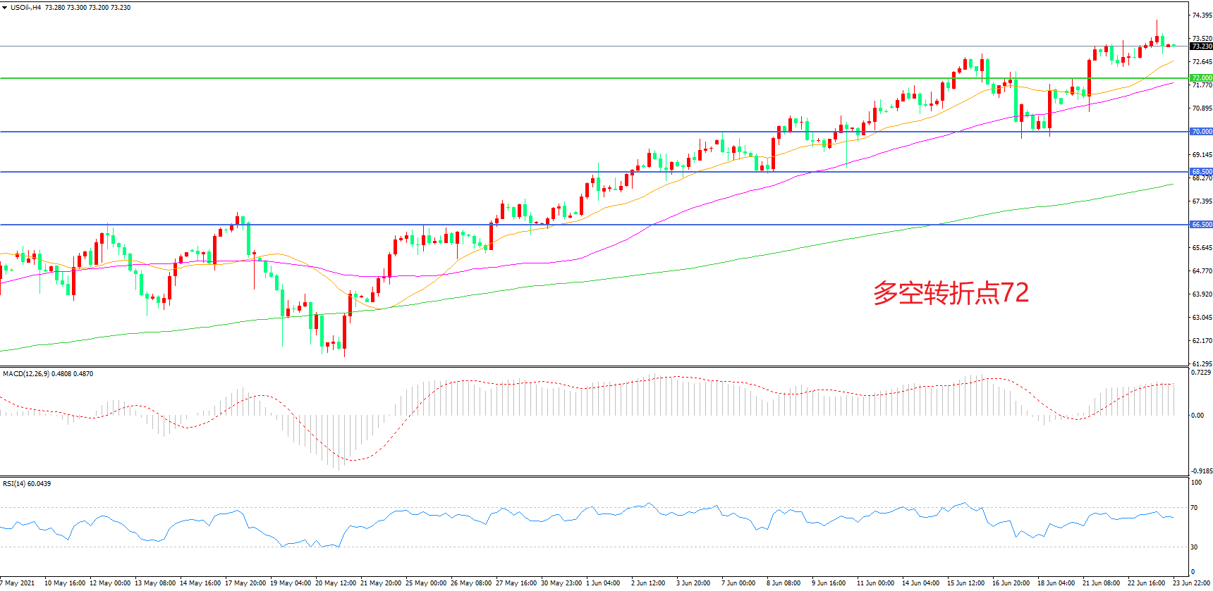 多空转折点:72.00