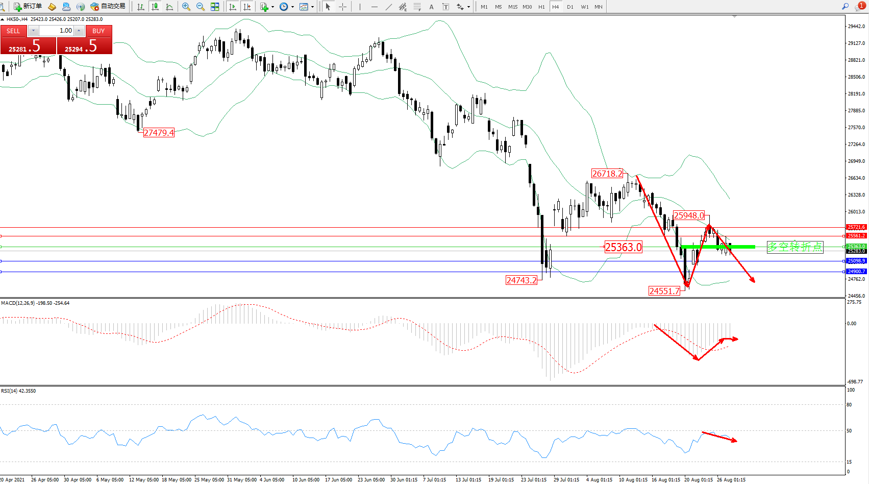交易策略:25363下方看跌,目标25098、24900